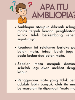 Berbalik kepada definisi Ambliopia, Ambliopia atau mata malas adalah penyakit di mana otak hanya menggunakan satu sahaja mata untuk melihat dan mengabaikan apa-apa imej yang dihasilkan oleh mata yang lemah. Oleh hal yang demikian, mata lemah tiada peranan dan kondisi penyakit pada mata tersebut akan menjadi lebih kabur atau teruk.